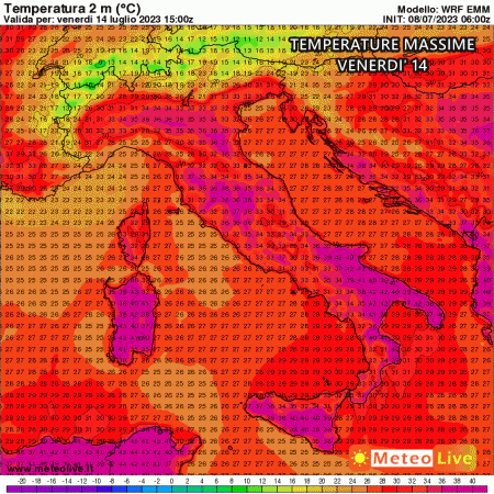 I primi forti caldi li avremo già questo week-end, ma le temperature ancor più alte subentreranno la prossima settimana. Tra 12 e 15 Luglio potremo imbatterci in temperature superiori ai 39-40°C su molte regioni del sud e sulle isole maggiori. Si stimano punte isolate di ben 43-44°C, valori assolutamente eccezionali, nei settori interni lontani dal mare. È chiaro che in presenza di temperature del genere il caldo possa rivelarsi pesante, insopportabile e opprimente per il corpo umano.