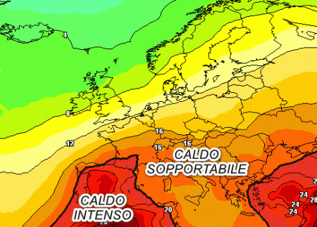 Il caldo intenso dovrebbe starsene lontano dall’Italia e colpire soprattutto la Penisola Iberica. Da noi vigeranno condizioni di caldo nel complesso sopportabile con punte eccessive solo locali e temporanee.