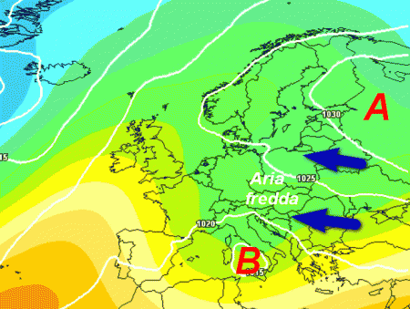 L’ultima perturbazione legata al flusso atlantico mite che ci sta interessando da diverso tempo, è prevista transitare sull’Italia a ridosso del prossimo week-end. Successivamente, la pressione sull’Europa centro-settentrionale dovrebbe aumentare, mentre sul Mediterraneo si instaurerà un regime blandamente depressionario alimentato da aria fredda di matrice orientale.
