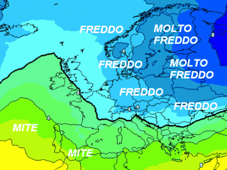 Notiamo l’isoterma 0° alla medesima quota che si appoggerà sulle regioni settentrionali, mentre l’arco alpino orientale vedrà isoterme, sempre alla stessa quota, attorno a -3/-4°. Relativamente più mite il clima sul resto d’Italia, dove le temperature a 1500 metri resteranno positive.