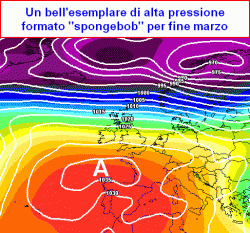 Sembra fin troppo spavaldo l’anticiclone messo in mostra nelle ultime ore dal modello americano. Anche se pare assumere la classica forma squadrata formato "Spongebob", l’allegra spugna di mare dei cartoni animati, garanzia di durata, in realtà non si vedono sulla carta quelle performances anticicloniche a cui eravamo abituati in passato.