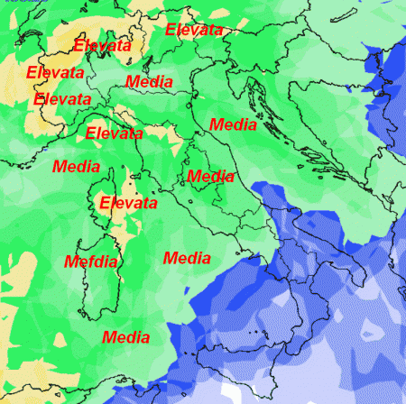 Tutto il centro-nord, arrivando fino alla Campania e al Molise, avranno una probabilità tra MEDIA ed ELEVATA, mentre più a sud la medesima probabilità viene al momento giudicata BASSA.