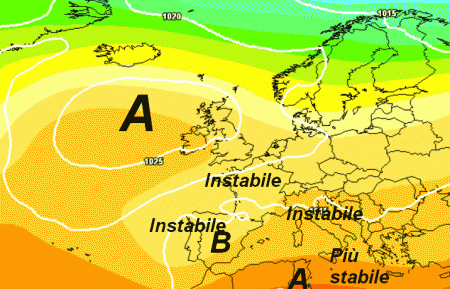Ancora alta pressione ubicata troppo a nord da consentire un regime stabile duraturo sulla nostra Penisola.