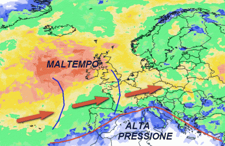 E’ evidente la traccia dell’alta pressione che campeggerà sui settori occidentali dell’Europa. Sull’Italia si attiverà un flusso mite da nord-ovest che accompagnerà qualche corpo nuvoloso sfrangiato, ma in grado di causare qualche pioggia segnatamente nelle aree interne del centro durante il pomeriggio.