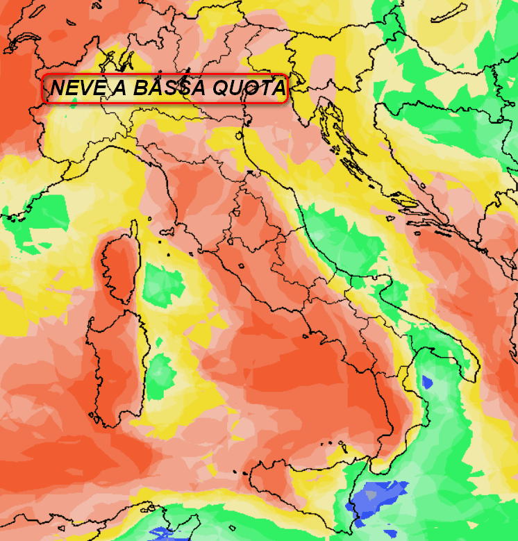 Nel complesso le temperature non saranno bassissime, ma sulle regioni settentrionali si potrebbe scendere di poco sotto lo zero alla medesima altezza; un calo del limite delle nevicate fino a bassa quota sarà quindi da mettere in conto, senza escludere a priori l’ipotesi della neve in pianura.