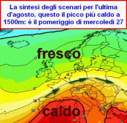 mercoledì 27 agosto: altra giornata calda sull’Italia dalle Alpi alla Sicilia, senza temporali, afoso nelle zone interne.