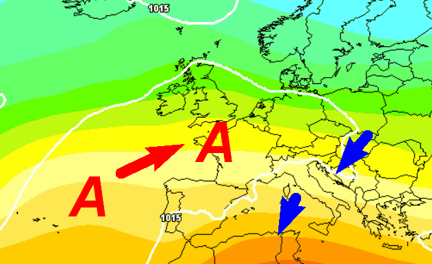 Volgendo lo sguardo oltre, qualche giorno fa vi abbiamo mostrato la tendenza all’allungo dell’alta pressione atlantica verso levante sul finire della prima decade mensile. Anche in questa sede possiamo confermare il tutto, con una mappa valida per giovedi 9 maggio: