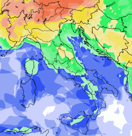 Notiamo come la probabilità di pioggia più elevata sarà concentrata al nord e nelle aree interne del centro. Risulterà invece più bassa al sud e sulle Isole.