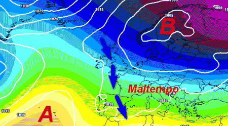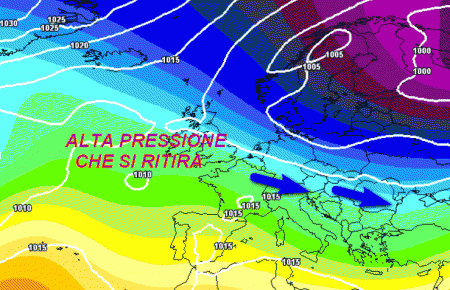 Il ritiro dell’alta pressione verso sud favorirà una circolazione maggiormente occidentale sull’Europa centrale e sull’Italia, ovvero con condizioni variabili ed in genere poco fredde. Anche le precipitazioni saranno nel complesso sporadiche e presenti essenzialmente sul Tirreno.