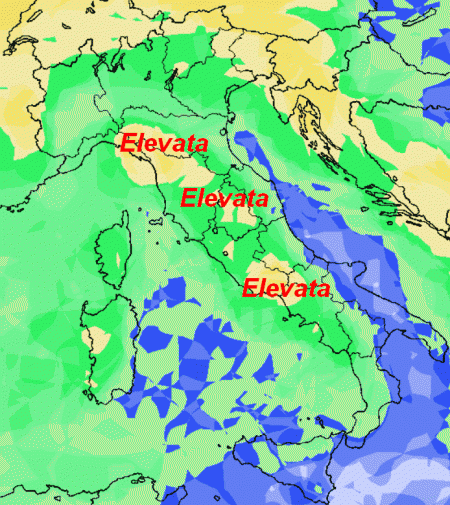 Notiamo infatti molti settori dell’Italia abbracciati da una probabilità di pioggia ELEVATA.