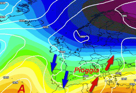 Notate l’aria fredda in discesa da nord-ovest sul Mediterraneo occidentale e il richiamo di correnti miti da sud sull’Italia meridionale. Insomma, tutto concorrerebbe per un periodo piovoso sul Bel Paese, accompagnato anche da temperature in calo.