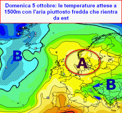 Qui, da est potrebbe infatti penetrare con moto retrogrado una massa d’aria piuttosto fredda, o comunque molto fresca per il periodo, già a partire da domenica 5 ottobre, dando vita ad un sensibile peggioramento del tempo e ad una depressione, in grado poi di destabilizzare tutta la struttura anticiclonica a partire proprio dalle basse latitudini e di catturare anche l’attenzione dell’Atlantico; in pratica potrebbe esservi un aggancio tra le correnti perturbate in arrivo da ovest e la falla depressionaria che si scaverà a ridosso della Penisola.