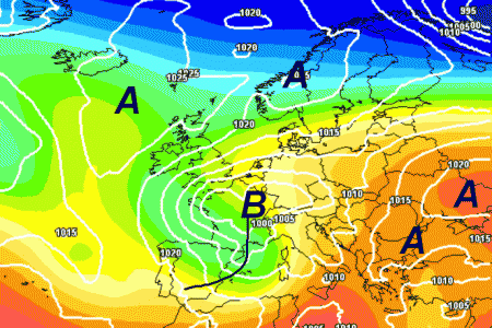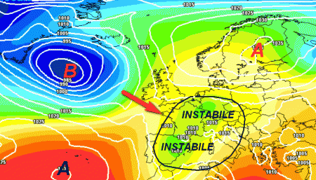 Le alte pressioni saranno lontane dalla scena italiana ed ubicate in sede scandinava e sul basso Atlantico. In mezzo si apprezzerà un vasto canale depressionario che potrebbe essere alimentato nei giorni seguenti da ulteriori apporti instabili e freschi da nord-ovest.