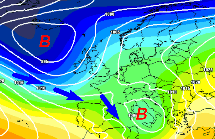 Depressione primaria poco a sud dell’Islanda; depressione secondaria al centro del Mediterraneo, il tutto collegato da un vasto canale instabile che si dipartirà tra due zone di alta pressione: la prima in aperto Atlantico e la seconda sulla Russia. Una situazione di blocco che questa volta non penalizzerà l’Italia, ma la bagnerà di preziosa pioggia ed imbiancherà i nostri rilievi di preziosa neve.