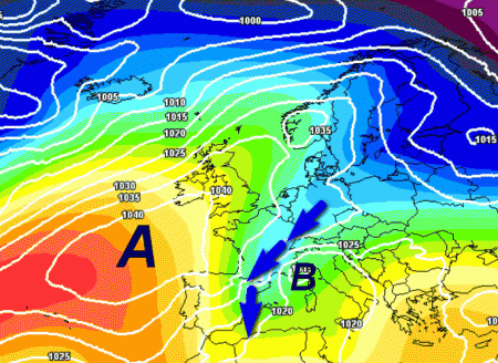 L’alta pressione dovrebbe defilarsi in Atlantico e consentire una discesa fredda "occidentalizzante" con successiva ciclogenesi sull’Italia, foriera di pioggia e neve anche sulle regioni settentrionali.
