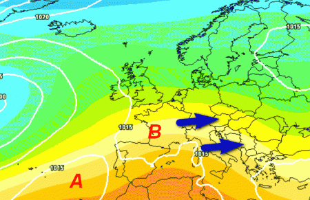 L’Italia, come vedete, viene relegata molto ai margini ed avrà un tempo abbastanza instabile e non caldo, con probabilità di pioggia tra il medio e l’elevato. Solo le due Isole Maggiori e l’estremo sud potrebbero risentire di un po’ di caldo, mentre il resto d’Italia assolutamente no.