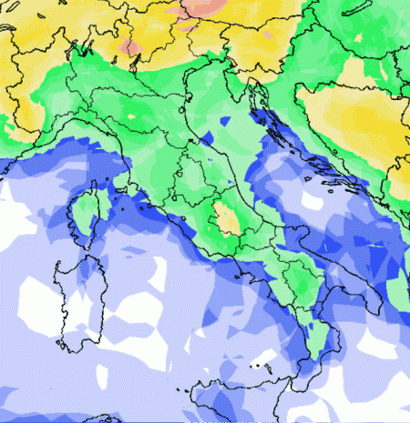 A parte le due Isole Maggiori e le estreme regioni meridionali che avranno una probabilità di pioggia bassa, le restanti regioni potrebbero presentare una probabilità di pioggia tra media ed elevata, di conseguenza un tempo poco incline al caldo anticipato.