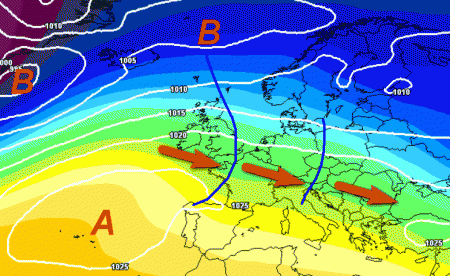 Alta pressione ben salda ad ovest e rientro freddo sull’Italia, con interessamento diretto del versante adriatico e del meridione. Su queste zone saranno anche possibili nevicate a bassa quota in Appennino accompagnate da forte vento. Niente di nuovo in quanto le restanti regioni italiane resteranno a guardare, segnatamente il nord che non avrà nessun fenomeno.