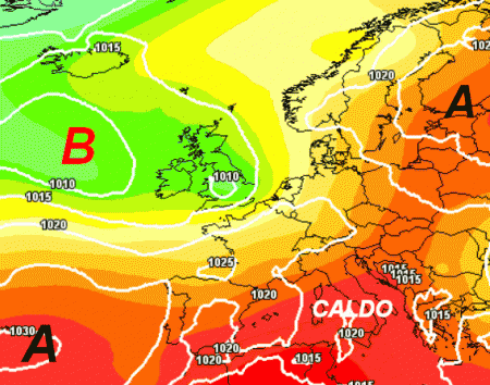 Il caldo e la stabilità diverranno presto un ricordo, sostituite da tempo instabile e fresco specie sotto i rovesci ed i temporali. La grande estate sarà di competenza della Penisola Iberica ed in parte del Regno Unito, dove avremo anche un consistente aumento delle temperature.