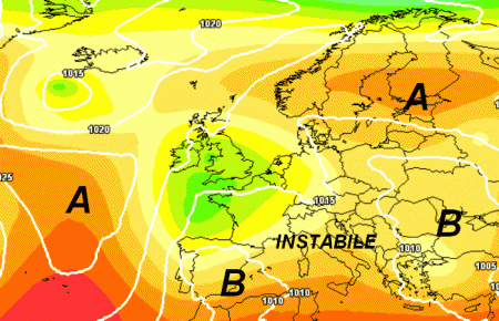 In affanno sia l’alta pressione delle Azzorre (disposto molto ad ovest) sia l’alta pressione africana (adagiata nei suoi luoghi di origine). Ne conseguirà una diffusa instabilità sull’Italia con temperature non all’altezza della stagione in corso.