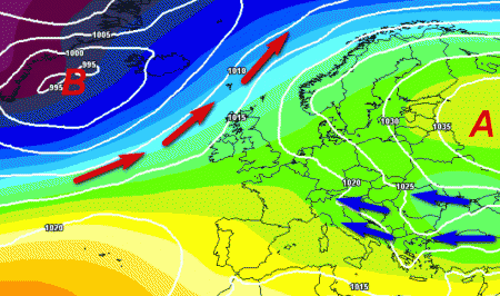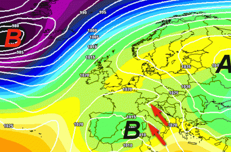 Purtroppo, la mappa rimarca ancora la latitanza delle perturbazioni atlantiche in favore di una circolazione fresca ed instabile proveniente dai quadranti orientali. Piogge quindi a carattere di rovescio e non diffuse, ma comunque presenti sul territorio italiano, in attesa che qualche perturbazione da ovest ci venga finalmente a trovare.