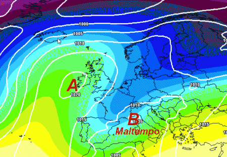 L’alta pressione si protenderà verso le Isole Britanniche, mentre sul suo fianco orientale scenderà aria fredda da nord-est che invorticandosi nel Mediterraneo darà origine a maltempo diffuso sull’Italia, specie al centro e al nord. Oltre a preziose nevicate sulle Alpi, arriveranno finalmente le piogge sulle pianure del nord a dare una boccata di ossigeno su queste zone, dopo l’ennesimo inverno da dimenticare.