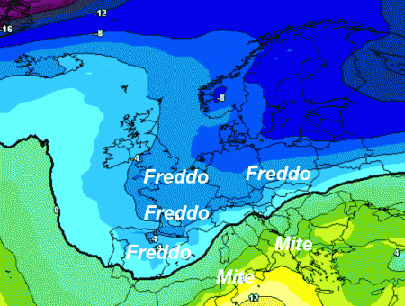 Pioggia, ma anche NEVE sulle regioni settentrionali a quote anche abbastanza basse. La media termica a 1500 metri imbastita questo pomeriggio dal modello americano mostra infatti quanto segue: