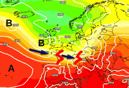 Cosa potrebbe succedere nella prima decade di agosto dal punto di vista meteo in Italia? Come abbiamo già anticipato, saranno due gli attori protagonisti sulla scena meteorologica italiana. Da una parte avremo il bollente anticiclone africano che di tanto in tanto proporrà le sue propaggini verso di noi, "infuocando" il clima soprattutto del centro-sud. Dall’altra la grossa ruota delle correnti atlantiche che potrebbero interessare a più riprese le regioni centro-settentrionali determinando la costruzione di temporali anche intensi.
