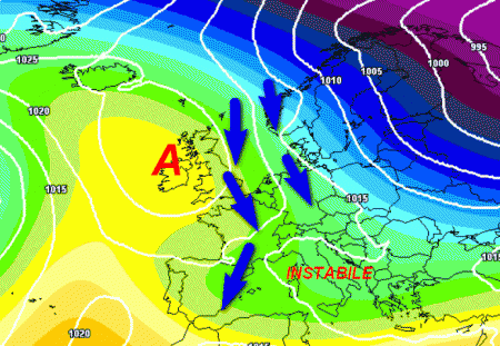 Ancora alta pressione sull'Europa centro-settentrionale ed instabilità sul Mediterraneo. Sul finire della prima decade potrebbe forse arrivare un fronte atlantico.