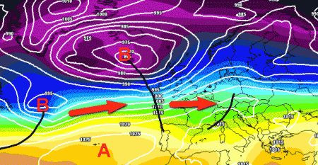 Esaurita la fase debolmente fredda da est che ci accompagnerà fino al termine della prima decade mensile, spazio all’ovest! Non avremo il passaggio di perturbazioni intense, ma un veloce fluire di corpi nuvolosi inseriti in un nastro trasportatore praticamente rettilineo che dall’Oceano arriverà fino da noi.