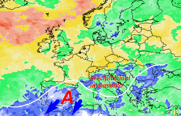 Si abbasserà l’azione “triturante” dell’anticiclone nei confronti delle precipitazioni, che potrebbero lentamente tornare sull’Italia soprattutto sulle Alpi e lungo il versante tirrenico.