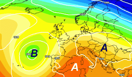 Ecco lo sprofondamento della depressione in Atlantico e la risalita della cupola di alta pressione proprio sull’Italia. Inutile dire che con questa situazione avremo tanto sole, tanta nebbia, tanto smog e temperature superiori alle medie; in altre parole, non sarà autunno.