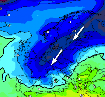 Dunque abbiamo buoni motivi per credere che tra sabato 6 e lunedì 8 marzo il tempo sull’Europa possa subire uno scossone invernale tardivo importante. Una lingua del vortice polare potrebbe spingersi repentinamente verso sud, attivando nell’area mediterranea una depressione in grado di determinare maltempo e anche neve a bassa quota, unitamente ad un marcato calo termico.