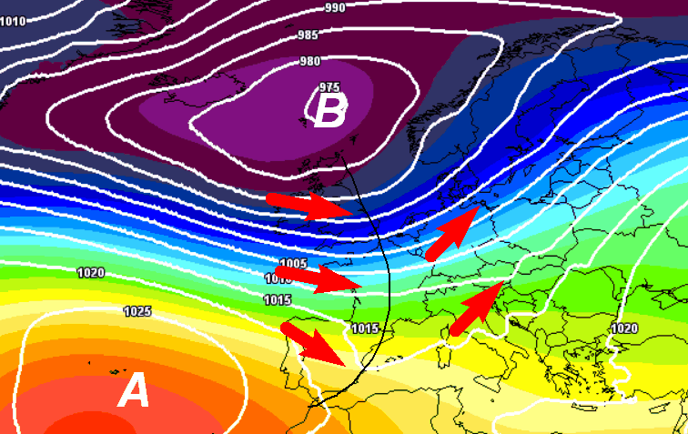 In un secondo momento le sopracitate correnti potrebbero assumere una componente più settentrionale, provenendo direttamente dal nord Atlantico. In questo caso sull’Italia potrebbe arrivare anche un po’ di freddo, specie al nord, con annesso calo del limite delle nevicate quantomeno sull’arco alpino.