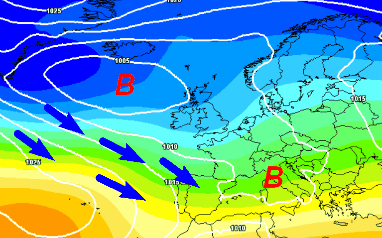 Un temporaneo rinforzo del getto da ovest sull’Europa centro-settentrionale determinerà il parziale allungo dell’alta pressione azzorriana verso di noi. Sulla nostra Penisola avremo quindi condizioni di variabilità positiva con belle schiarite e qualche rovescio che potrebbe esserci nelle aree interne del centro e del meridione, in un contesto termico nel complesso mite.