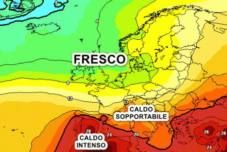 Il caldo intenso sarà una prerogativa della Penisola Iberica e del nord Africa, mentre sul centro-nord del Continente l’estate continuerà a latitare, con un clima addirittura fresco tra le Isole Britanniche e la Scandinavia. Da noi vigerà invece un caldo nel complesso sopportabile.