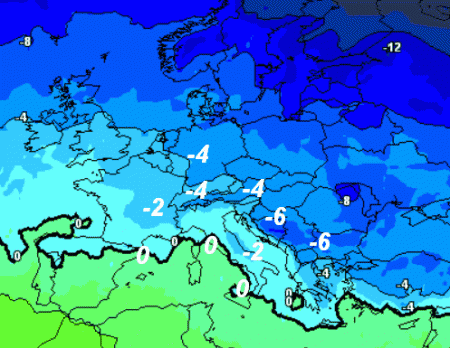 A tal proposito vi mostriamo il QUANTILE 25% A 850 (1500 metri di altezza), lo scenario un po’ più favorevole al freddo che potrebbe potenzialmente realizzarsi nella giornata di martedi 10 gennaio, tralasciando quelli più estremi e meno probabili. E’ una possibilità tutt’altro che remota e anche se oggi non è la più probabile, riteniamo interessante segnalarvela.