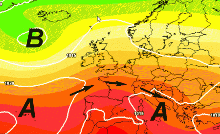 Anche il caldo intenso dovrebbe spostarsi sulla Penisola Iberica: