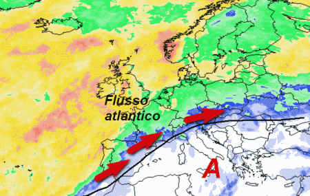 Si nota qualche passo avanti delle correnti atlantiche verso l’Italia, ma ancora troppo poco per poter gridare finalmente al cambiamento; il gobbone africano sarà sempre ben disteso alle basse latitudini del Mare Nostrum e potrebbe ritirarsi del tutto solo successivamente.