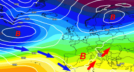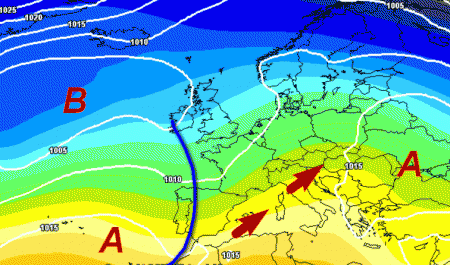 L’alta pressione potrebbe levare finalmente la sua roccaforte dalla Penisola Iberica. Così facendo, permetterà alle correnti oceaniche di entrare decise sul bacino del Mediterraneo e sull’Italia, accompagnando fronti piovosi a ripetizione.