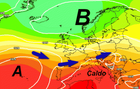 Le regioni settentrionali saranno invece lambite da un flusso relativamente più fresco ed instabile da ovest. Qui saranno possibili temporali specie in prossimità delle aree montuose, con relativi cali termici.