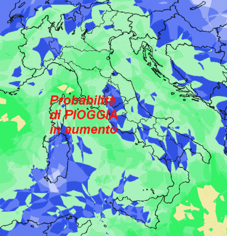 In altre parole, la probabilità di pioggia sarà in aumento un po’ ovunque, ma sempre in un contesto piuttosto mite.