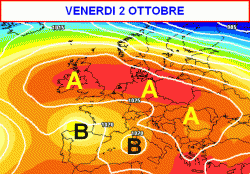 Confermata la fase di maltempo sul Mediterraneo tra giovedì e venerdì oltre alla fase di tempo migliore nei primi giorni della settimana prossima, seppure con qualche disturbo sui settori orientali e al sud. Un peggioramento più serio potrebbe intervenire verso la fine della prima decade di ottobre, specie al centro-nord.