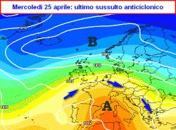 Dietro ad esso tornerebbe ad inserirsi un cuneo anticiclonico di matrice subtropicale della durata di un paio di giorni, ma sufficiente per garantire una festa della liberazione molto tranquilla, soleggiata e mite.