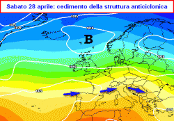 tra venerdì 27 e sabato 28 aprile: passaggio di un primo fronte temporalesco tra nord e centro con temporali sparsi e moderato calo termico.