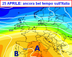 Buona notizie per la festa del 25 aprile in Italia. L’alta pressione che ci accompagnerà per tutta la settimana sembra voglia prolungare il suo dominio fino al periodo festivo.