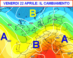 Dopo molte peripezie e indugi, una saccatura atlantica dovrebbe sfondare sul Mediterraneo centro-occidentale, causando piogge e rovesci al centro-nord già nella giornata di venerdì 22 aprile.