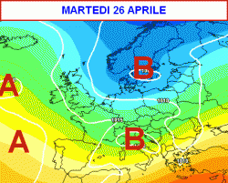 Il peggioramento delle condizioni atmosferiche, indotto dalla ritirata verso sud-est dell’alta pressione africana, si concretizzerà a cavallo del ponte festivo del 25 aprile ad iniziare dalle regioni settentrionali.