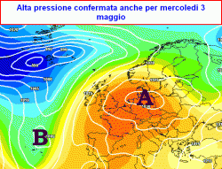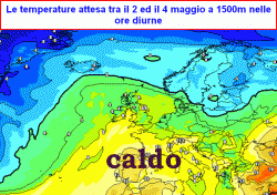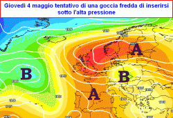 prevede una sostanziale tenuta dell’alta pressione sino al 7-8 maggio e poi l’intervento da ovest di qualche perturbazione atlantica. Tra le tre opzioni al momento ci sembra quella buttata lì un po’ di default, mentre l’idea di un disturbo da nord-est appare quella sinotticamente più credibile, sebbene difficile da decifrare.