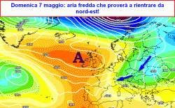venerdì 5 e sabato 6 maggio: possibile svolta instabile generale a causa dell’inserimento di un piccolo ma insidioso vortice freddo con precipitazioni sparse, spesso temporalesche e più probabili nel pomeriggio e all’interno. Moderato calo termico.